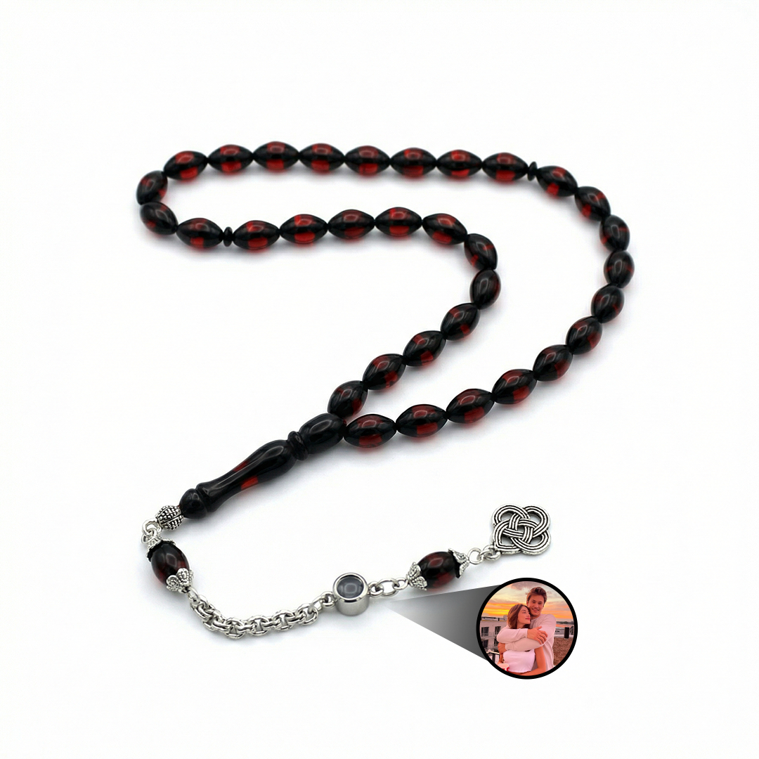 Kişiye Özel Fotoğraflı Vişne Kehribar Tesbih