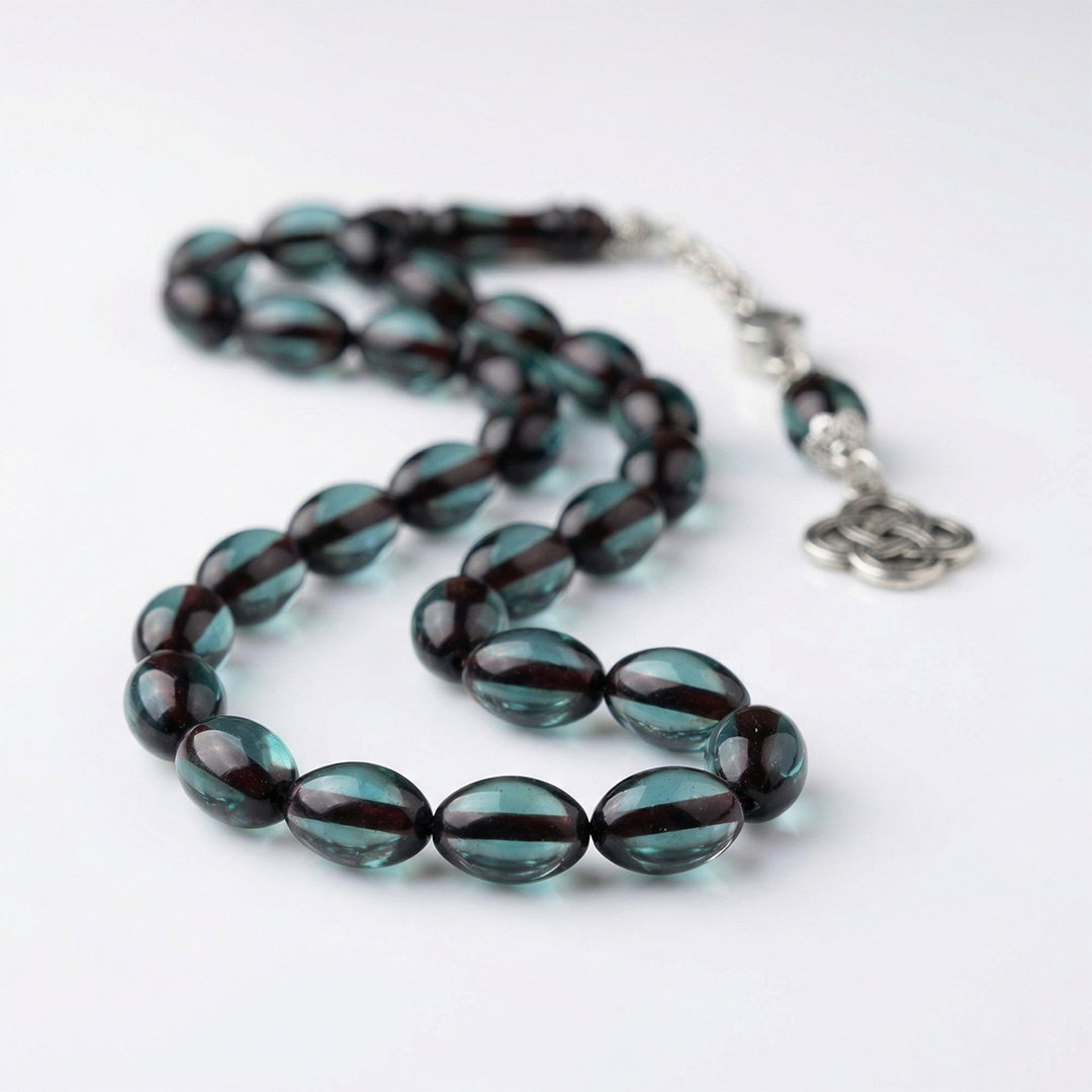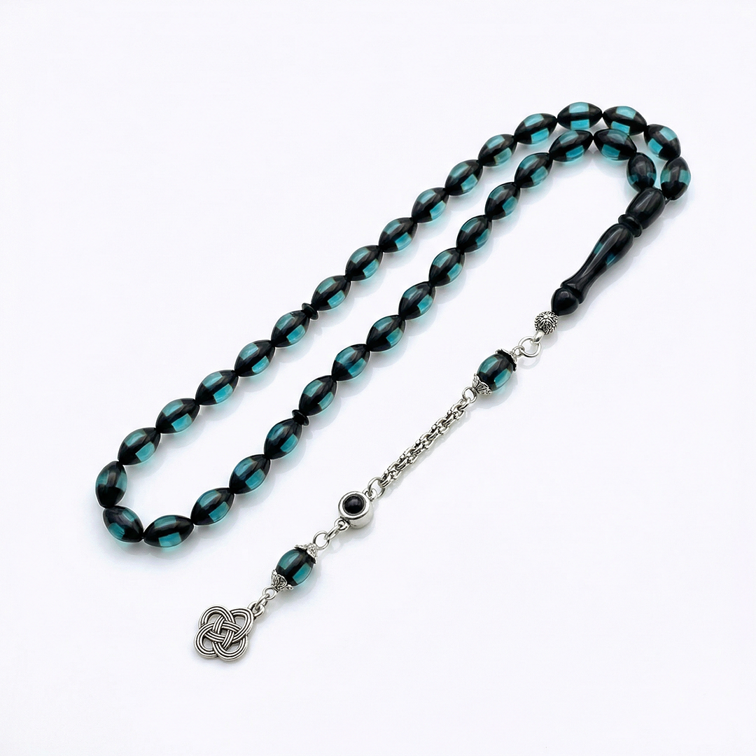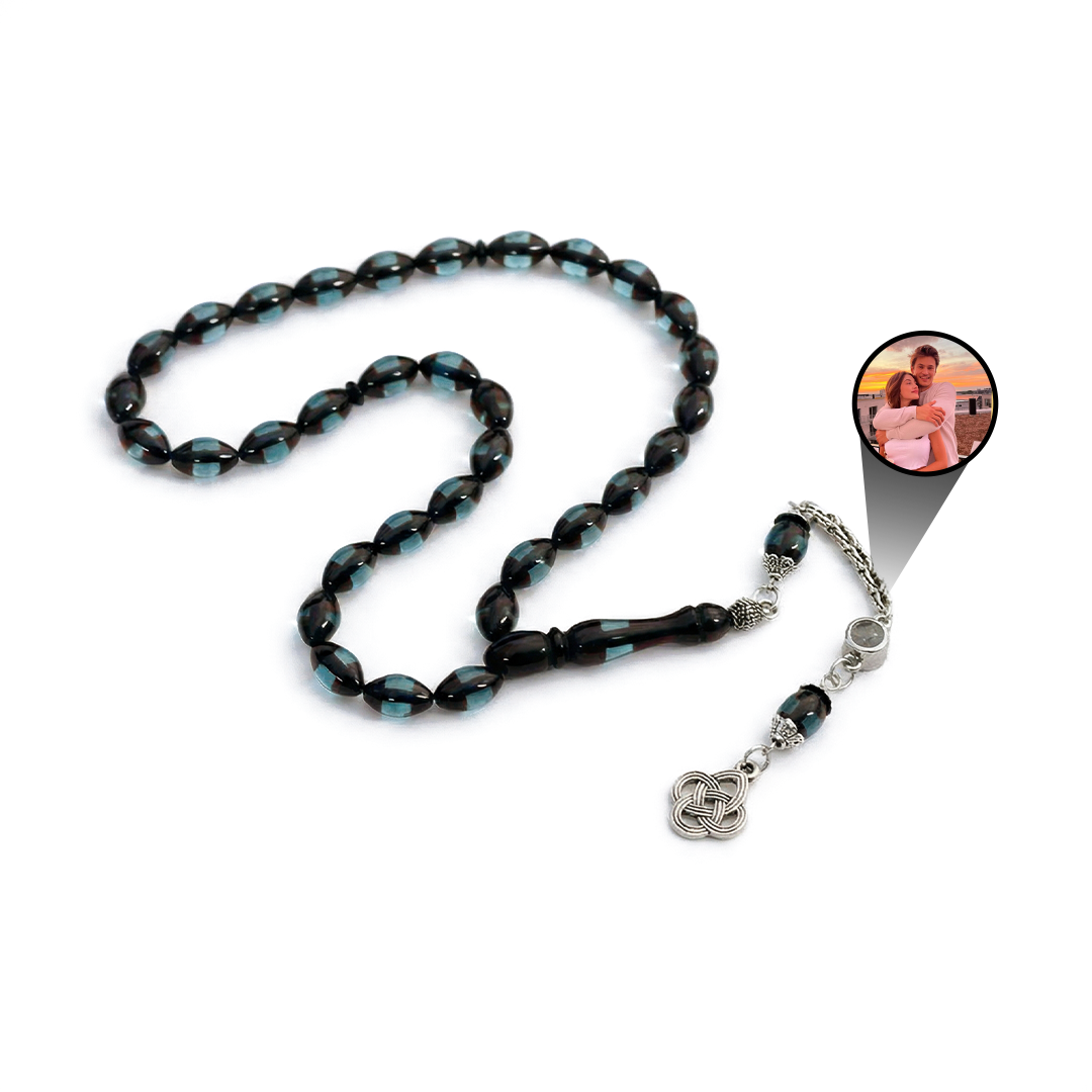 Kişiye Özel Fotoğraflı Turkuaz Kehribar Tesbih